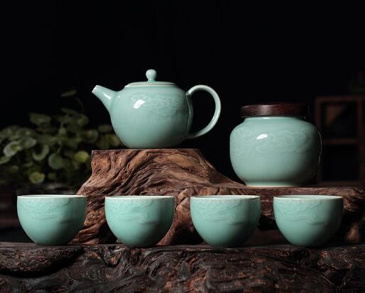 青瓷茶具早在東漢年間,已開始生產色澤純正、透明發(fā)光的青瓷。晉代浙江的越窯、婺窯、甌窯已具相當規(guī)模。六朝以后,許多青瓷茶具擁有蓮花紋飾。