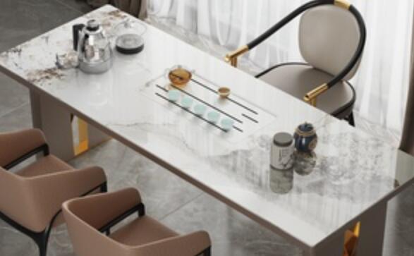 3、材質(zhì):茶桌茶臺可以選擇大理石、實(shí)木、玻璃或金屬材質(zhì)。根據(jù)個人喜好和使用需求來選擇合適的材質(zhì)。