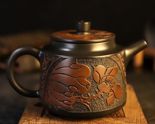 紫陶原料是含鐵量高的粘土原料,它相較紫砂更加“細(xì)膩柔軟”,有泥土的特質(zhì),成品無釉磨光和精細(xì)的雕刻則有別于其他陶器??伤苄缘?,對壺壁的厚度要求較高,燒成后的硬度較高,密封性好。